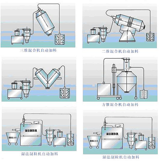 該機是粉狀料、粒狀料、粉粒料混合料的真空輸送設備。真空上料機能自動地將各種物料輸送到包裝機、注塑機、粉碎機等設備的料斗中,也能直接把混合的物料輸送到混合機(如V型混合機、二維混合機、三維混合機等)中,減輕了工人勞動強度,解決了加料時粉塵外溢等問題,是制藥廠、食品廠通過認證、促進清潔、文明生產(chǎn)的設備。