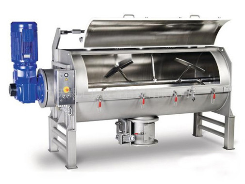 混合機啟動后犁刀由犁刀軸帶動旋轉(zhuǎn),使物料沿筒體徑向作周向湍動,同時把物料沿犁刀兩側(cè)面的法線方向拋出。當(dāng)被拋出和作周向湍動的物料流經(jīng)飛刀組是時,被高速旋轉(zhuǎn)的刀飛迅速、有力地拋散。物料在上述犁刀和飛刀的復(fù)合作用下,不斷擴散、在短時間內(nèi)達到均勻混合,混合精度高。