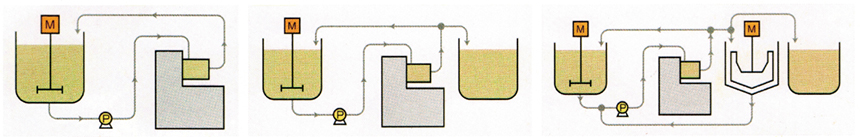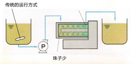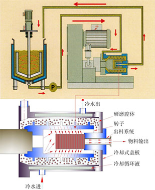 循環(huán)操作只需一個(gè)或兩個(gè)攪拌桶實(shí)現(xiàn)循環(huán)砂磨,而且攪拌桶內(nèi)粗顆粒會快速沉淀而優(yōu)科學(xué)入砂磨腔砂磨。