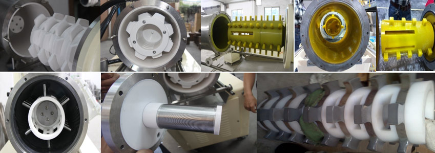 出料面積大,是盤式和渦輪式機(jī)器的2-4倍,物料通過性好,不易堵塞機(jī)器,在生產(chǎn)有膨脹性物料時(shí)優(yōu)點(diǎn)突出。冷卻換熱效果好。桶體,轉(zhuǎn)子,出料器三位冷卻,冷卻面積是盤式及渦輪式設(shè)備的1.3-1.5倍,有效控制物料的升溫問題。